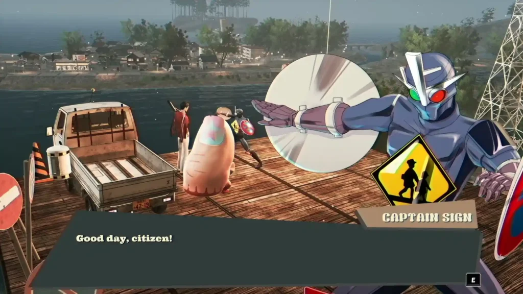 The game is set in a run-down rural Japanese town plagued by economic decline, corruption, and an ominous supernatural curse. Abandoned buildings, closed storefronts, and crumbling infrastructure give the world a melancholic atmosphere that contrasts sharply with the absurdity of the mascots.